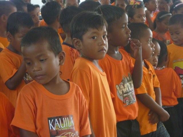 | The orange "beat" team from Aur Aur village, Aur Atoll |